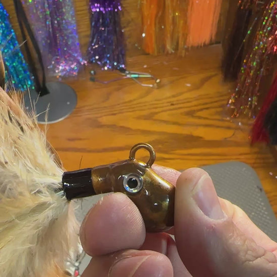 *Jig appearance may vary slightly based on material availability at time of order, we are a custom shop not a mass producer. Every jig is artistically made and not a "cookie cutter" product. At time it may be required to use a similar but alternate color jig head based on availability. Standard overall length is 7-9" and mainly dictated by the feathers available at time of hand-tying your jig. Contact us for special requests or more information prior to ordering.
