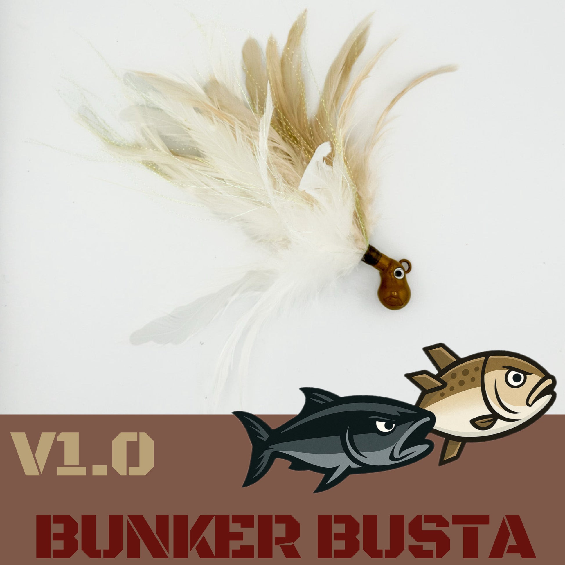 Bunker Jig / Menhaden Jig - Tan & White feathers, Octopus head with Mustad 8/0 hook