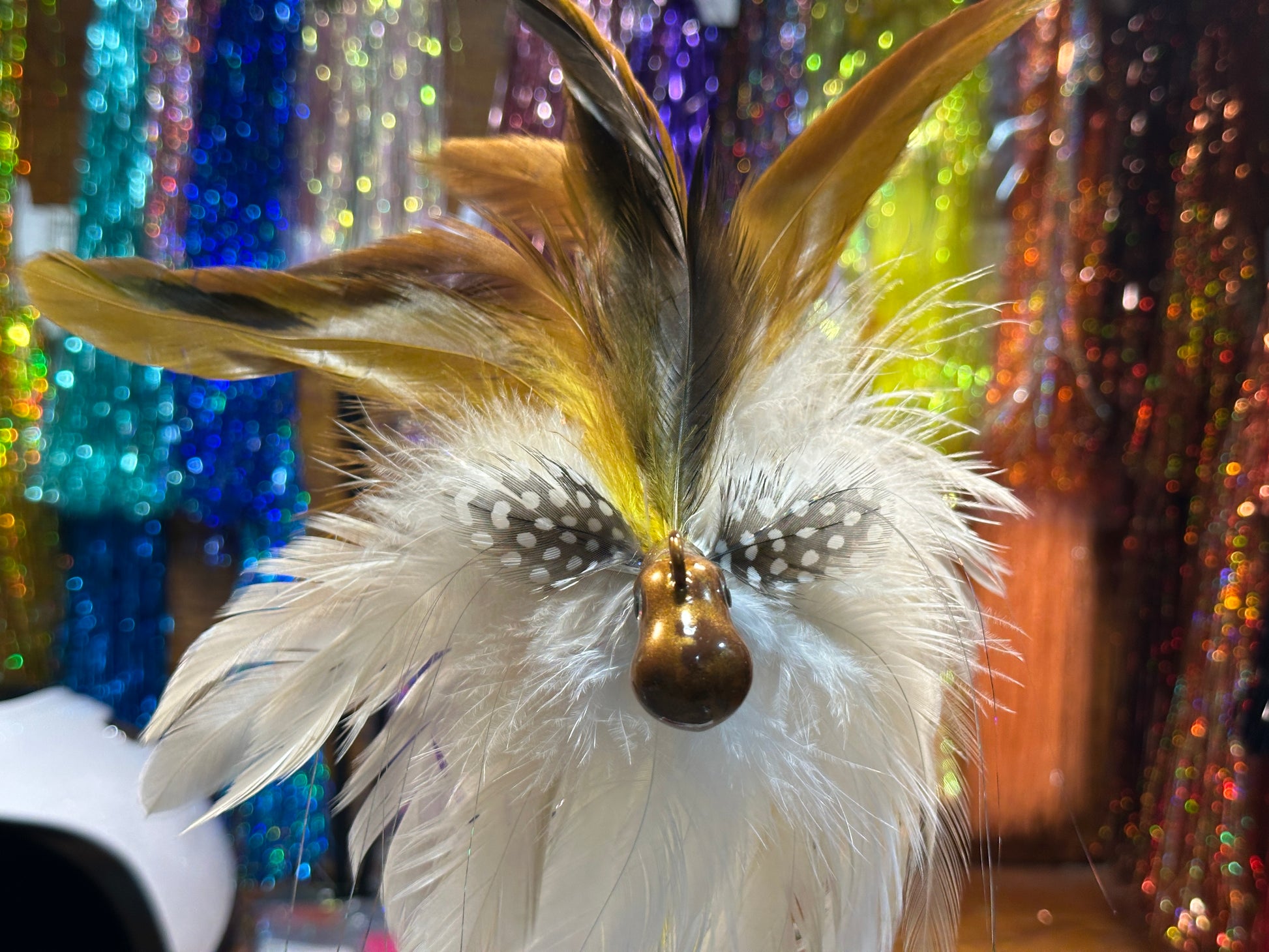 Mottled Yellow Top, Tan Sides, White bottom Feathers, with added Spotted Feathers, Yellow Tail and Flash
