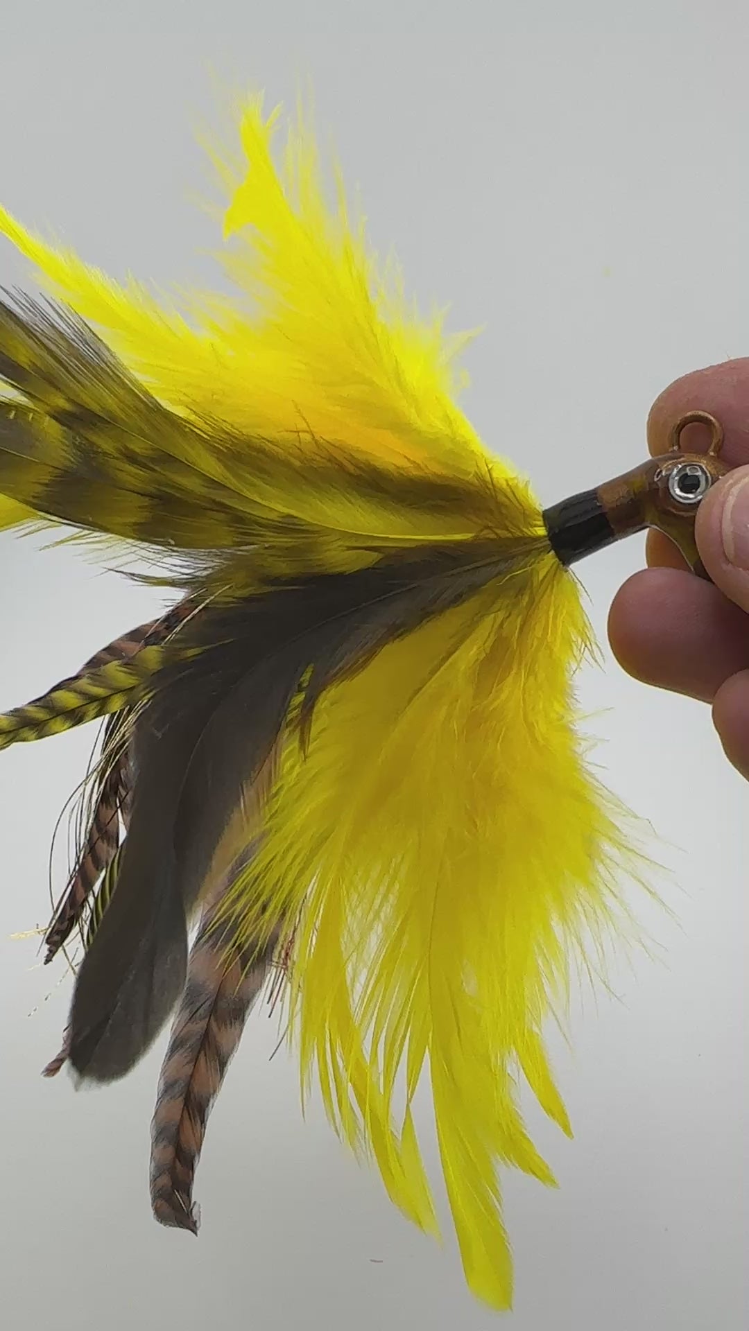 Yellow Feathers with Mottled & Grizzly Yellow Sides, Yellow & Brown Grizzly Tail + Flash